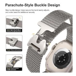Parachute-style Buckle:Â The Milanese Loop features a secure parachute-style buckle helps secure the band easily adjusts, same as iWatch’s new Titanium Milanese Loop Band. The milanese mesh loop is infinitely adjustable, ensuring a optimal fit