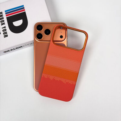 Crafted for users who crave premium minimalism without compromising on durability, this case features a snug-fit fiber polymer shell with a unique red–orange gradient inspired by the golden glow of a setting sun. The lightweight build ensures your iPhone feels sleek in hand, while the textured carbon-fiber pattern enhances grip, comfort, and long-term scratch resistance.
